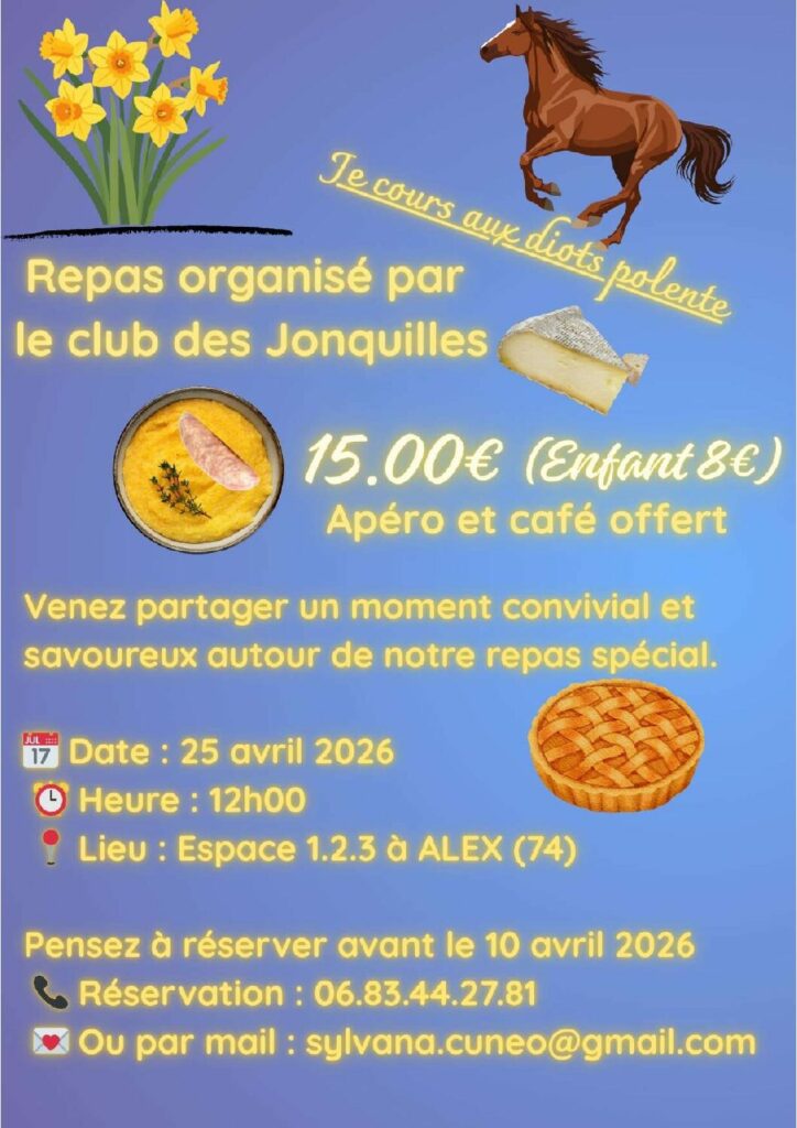 Le club des Jonquilles organise un repas ouvert à tous à l’espace 1. 2. 3 à 12h