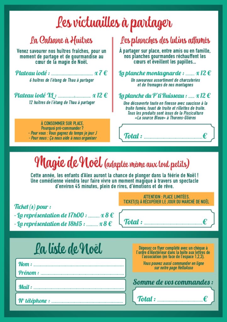 🧺 Gagnez du temps : précommandez sapins, gourmandises, repas et spectacle sur notre page HelloAsso 👉 en cliquant ici